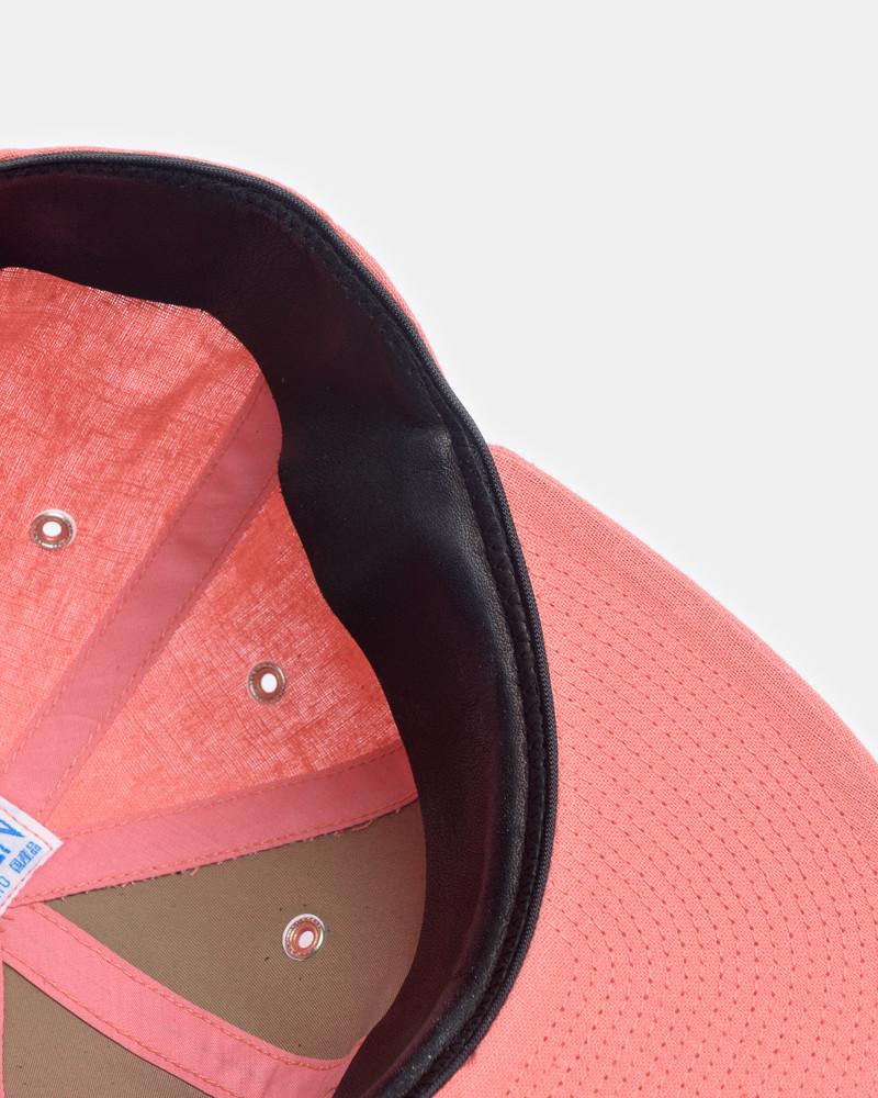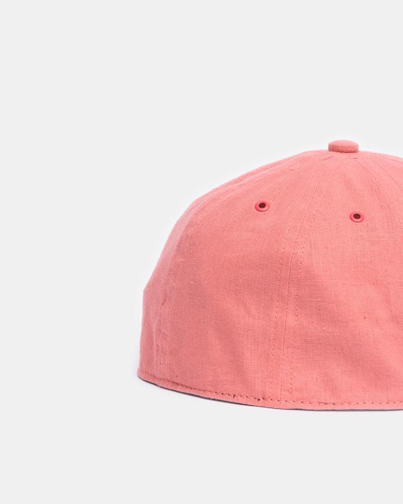Japanese Baseball Hat in Salmon by Poten. A collaboration between SMOCK and Poten, this traditional baseball hat features a cotton and linen blend, eight panel construction, dark pink metal eyelets, pink stitching throughout, and a soft leather interior sweatband.