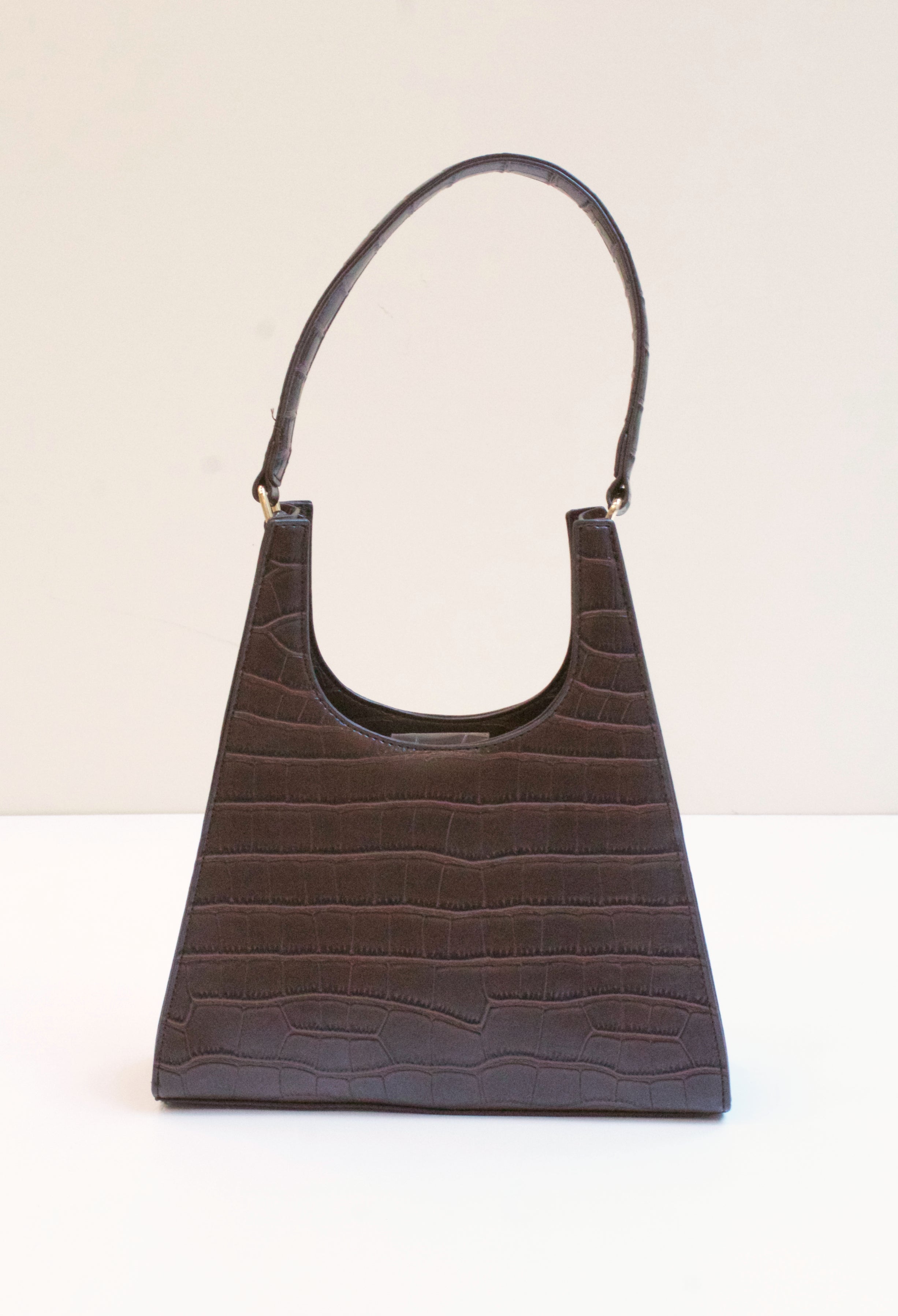 The ARIES bag is a classic design made from the softest faux croc leather. It sits perfectly on the shoulder, making it lightweight and easy to carry. It is also designed with a zipped inside pocket and a clasp to keep belongings secure. The buckle detail is gold.