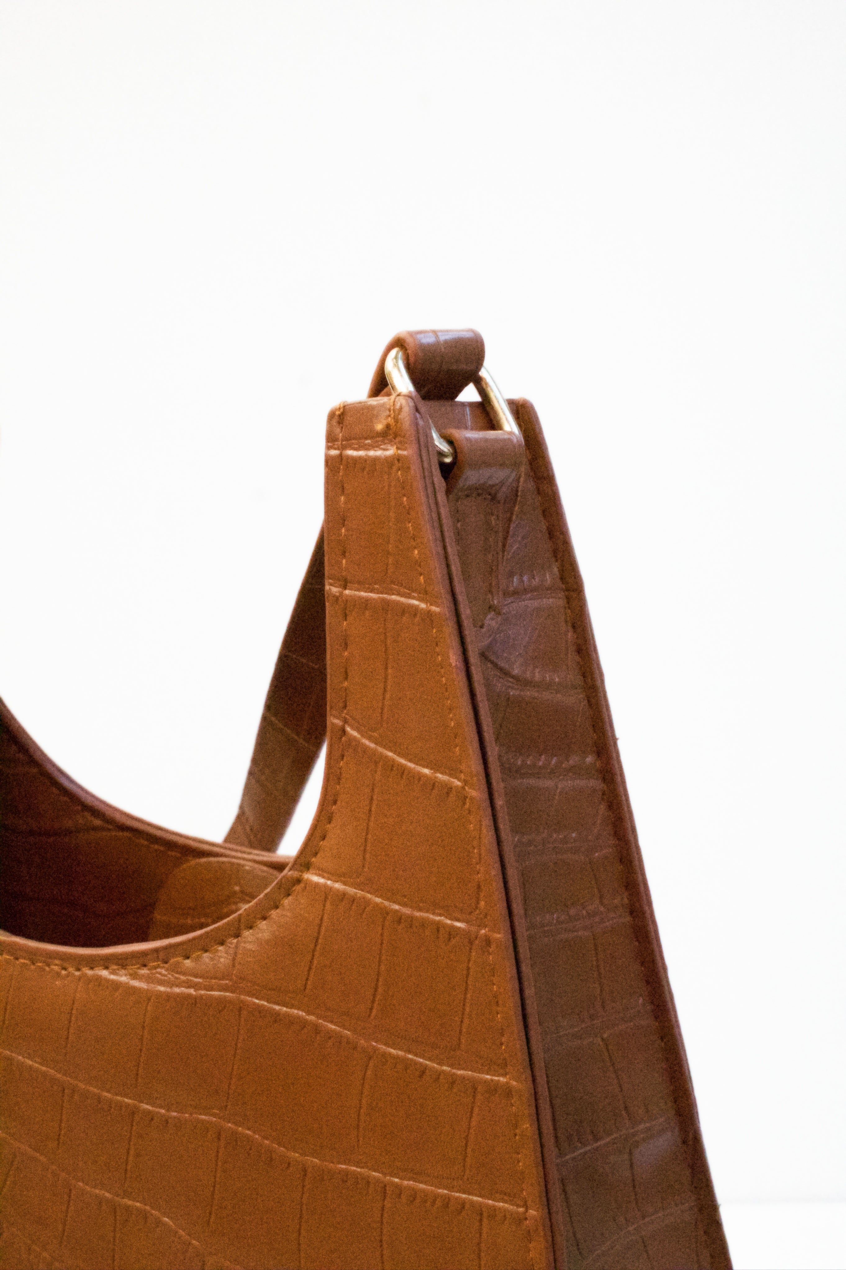 The ARIES bag is a classic design made from the softest faux croc leather. It sits perfectly on the shoulder, making it lightweight and easy to carry. It is also designed with a zipped inside pocket and a clasp to keep belongings secure. The buckle detail is gold.
