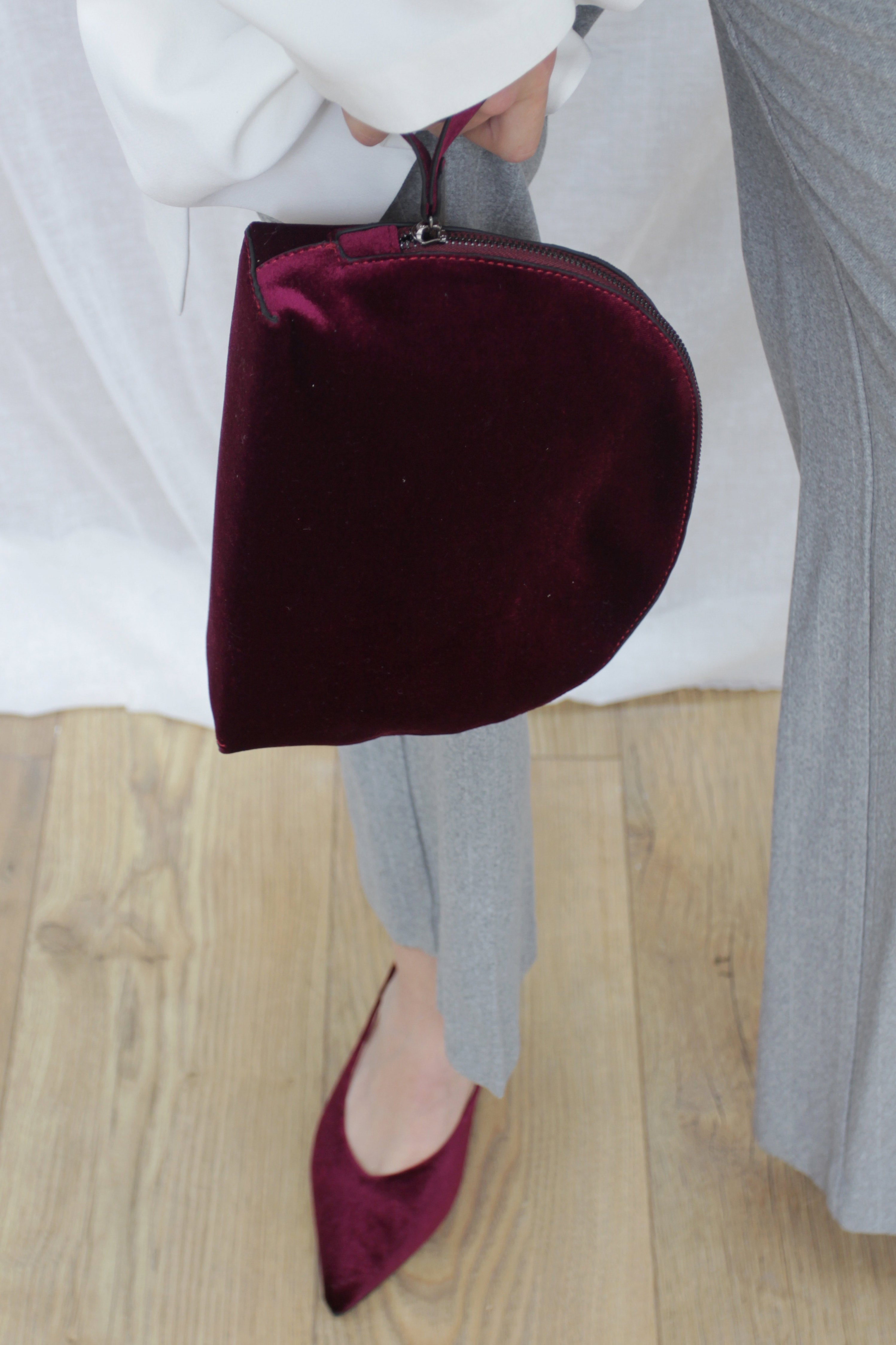 Match the clutch with the OSSA velvet kitten heel pumps.