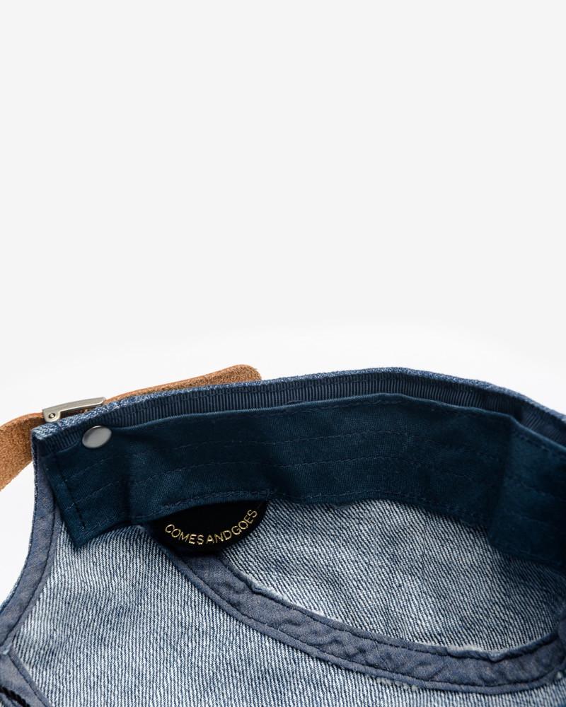Nonnative's classic 5 panel design hat is a practical piece of headwear constructed from 13 oz. denim. It's finished with a reinforced flat peak and an adjustable leather strap to the back, fit for both form and function.