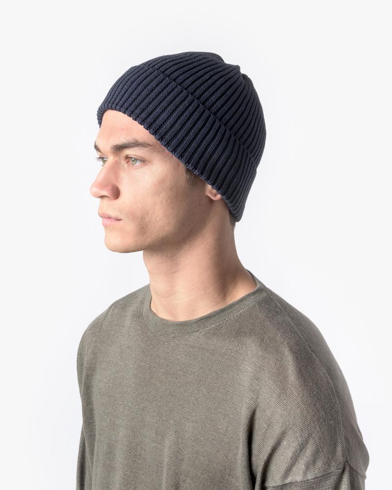 Washi Beanie in Navy by SMOCK Man. Year-round beanie features a rich navy rib knit.