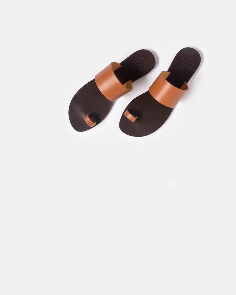 Astrid Flat Sandal in Dark Natural by ATP Atelier. Minimalist sandal features a leather sole, leather foot band, and single toe band.