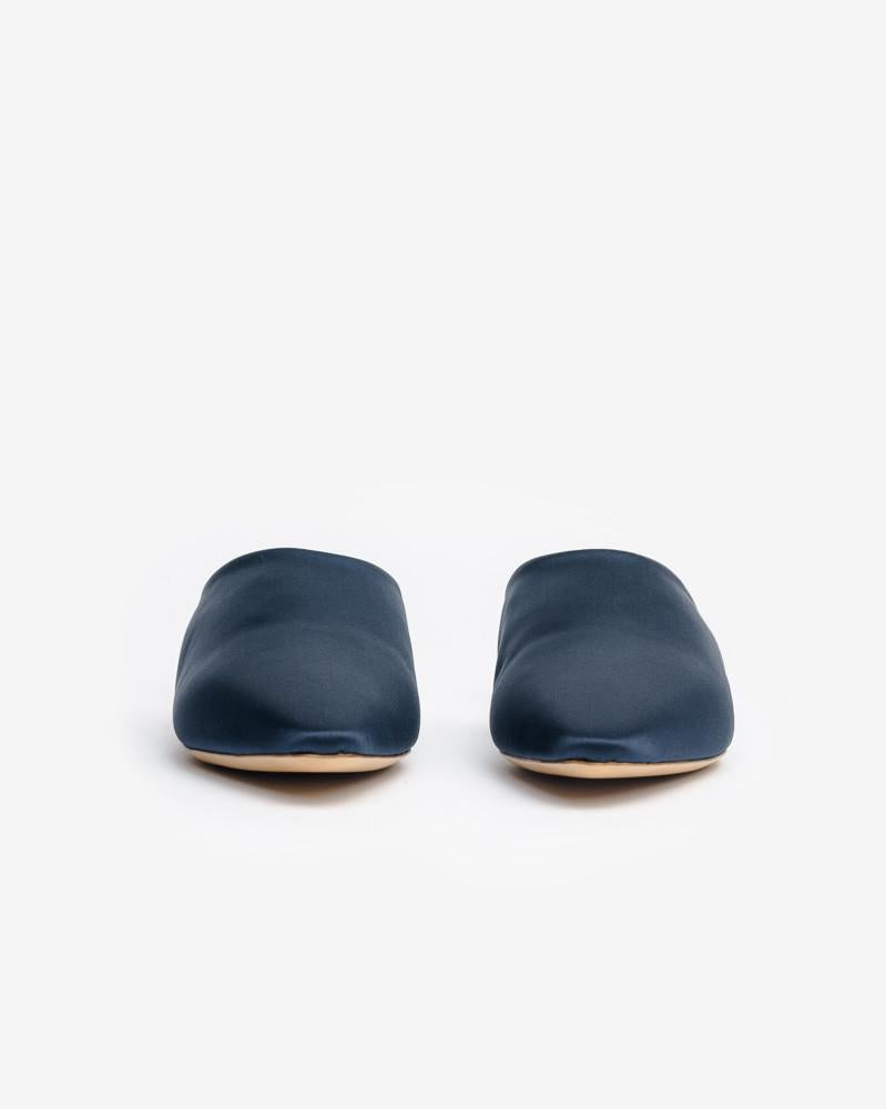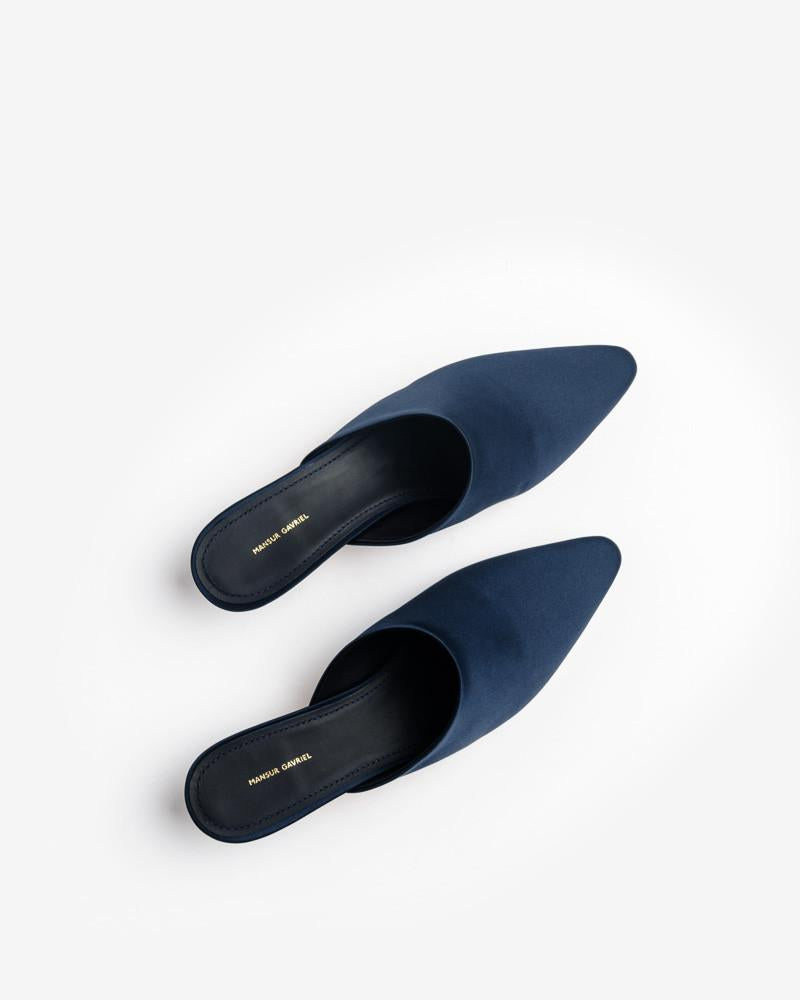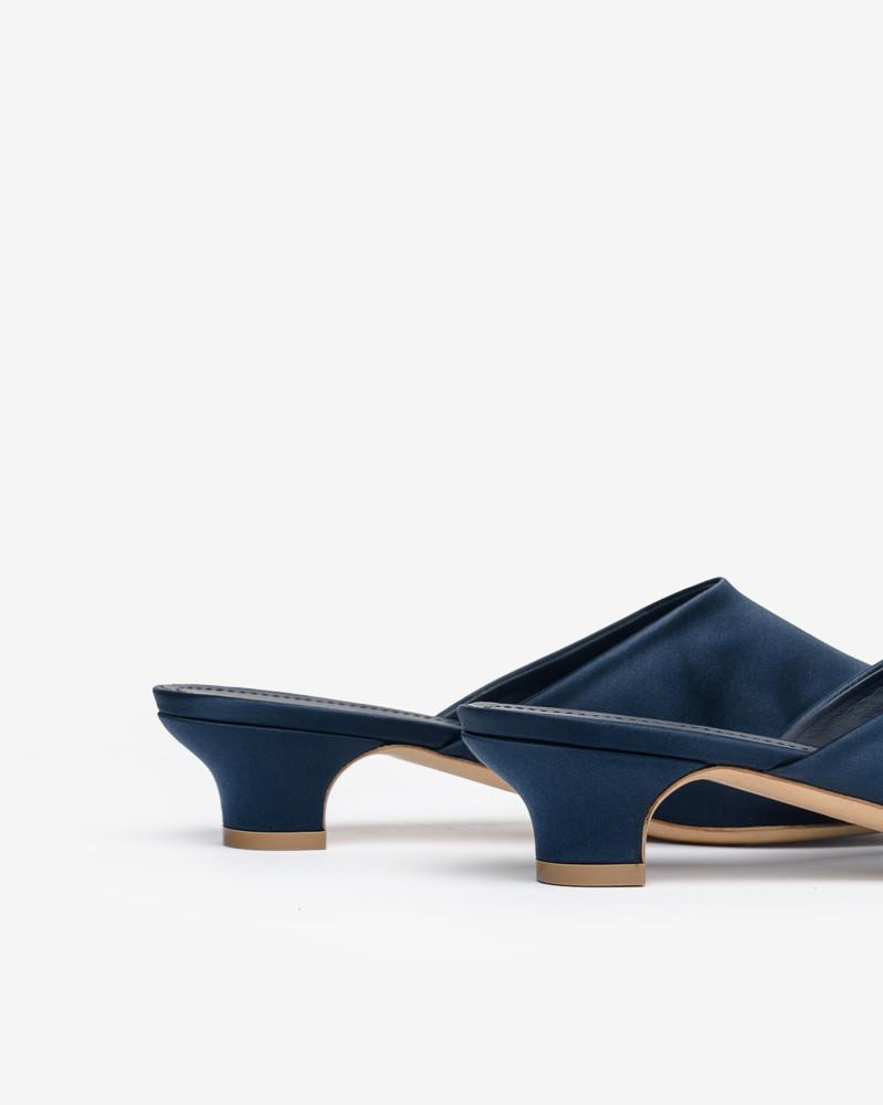 These sleek slides are crafted in leather, then coated in midnight-blue satin. Featuring an elegant pointed toe, an easy-to-walk-on kitten heel and a soft leather insole.