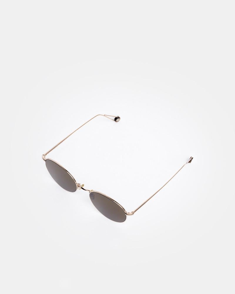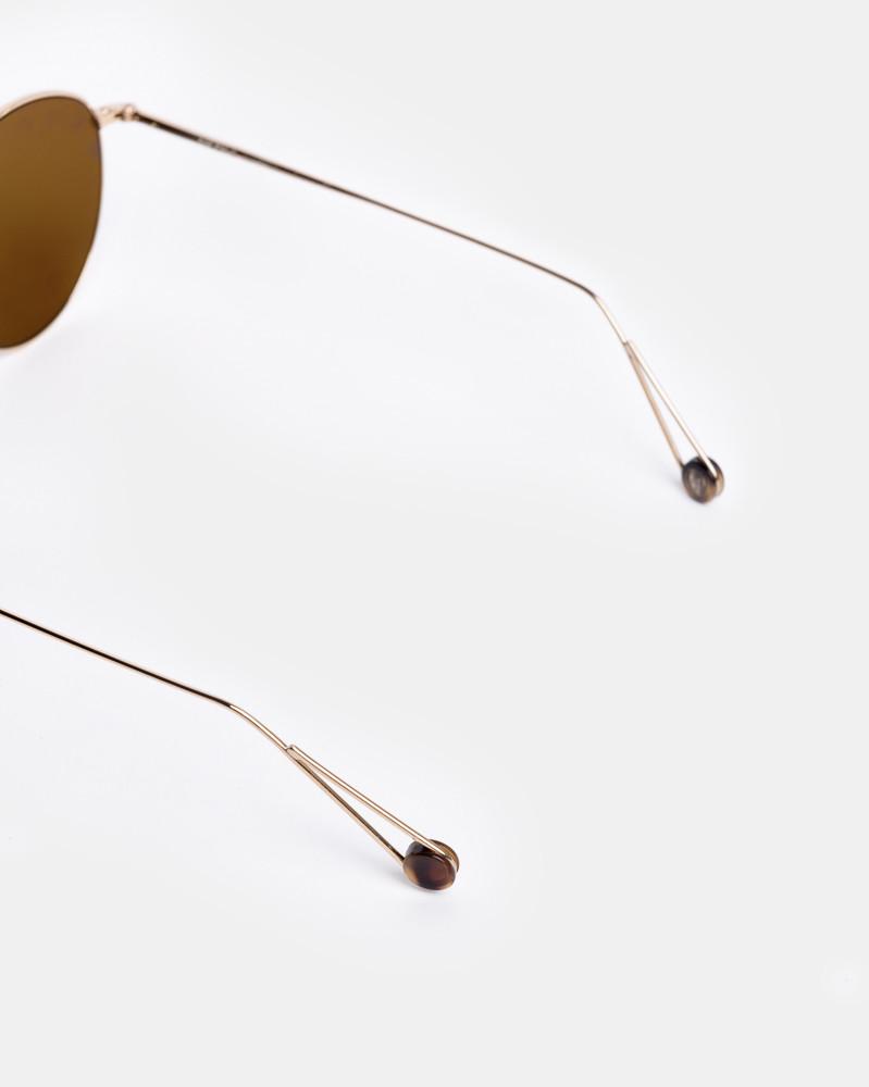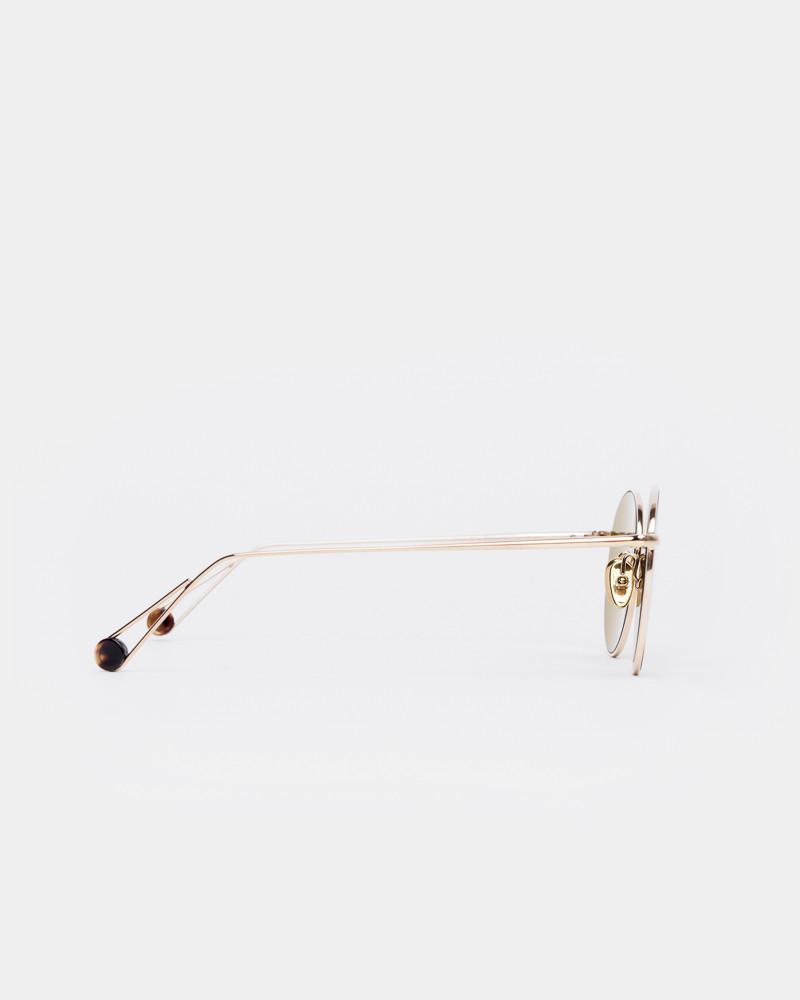 Madeleine Sunglasses in Champagne by Ahlem. Polished minimalism at its best, the Madeleine features a classic feminine shape with impeccable modern detailing. This elegant frame is composed of feather-light, gold-dipped palladium and finished with our signature temple tip made from hand-sourced vintage acetate.