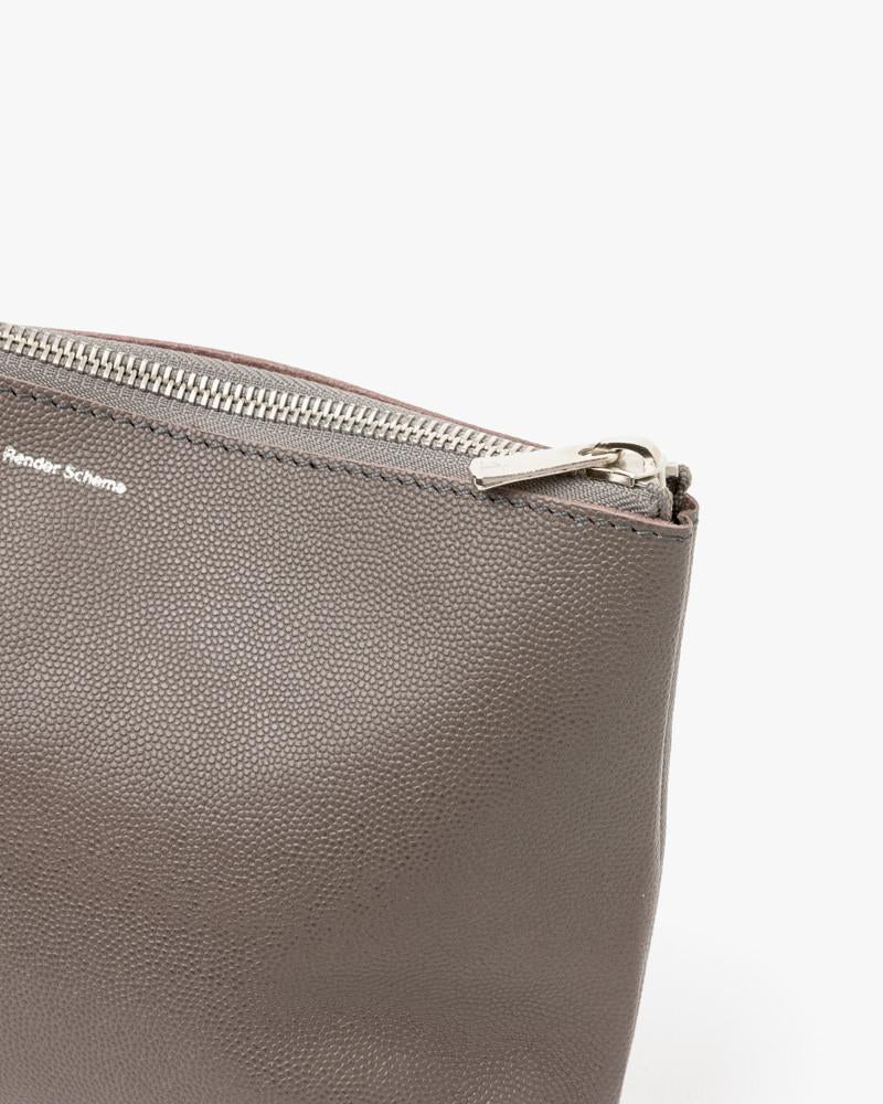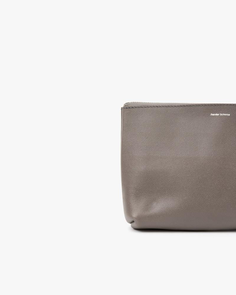 Medium Pouch in Gray by Hender Scheme. Leather pouch in gray features zipper top, logo embossed in silver at both sides, and unlined interior.