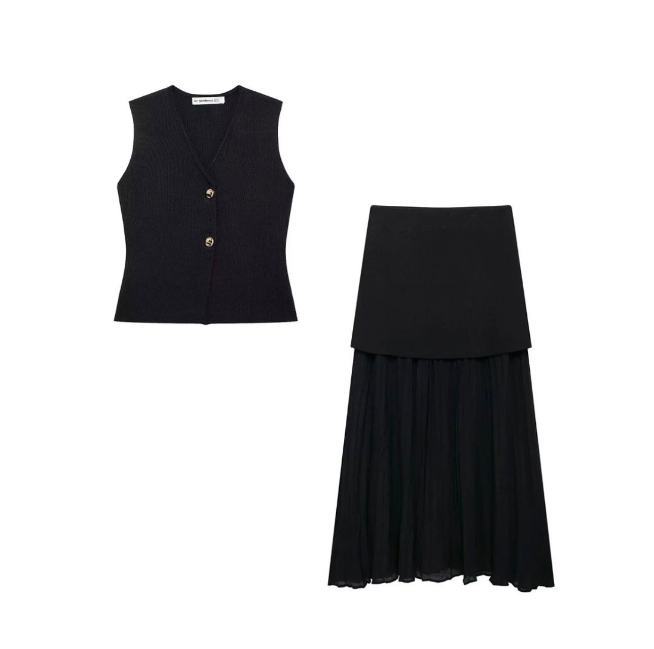 Vest sizeS - Bust: 88cm; Length: 41cmM - Bust: 92cm; Length: 42cmL - Bust: 96cm; Length: 43cmSkirt sizeS - Waist: 72cm; Length: 88cmM - Waist: 76cm; Length: 89cmL - Waist: 80cm; Length: 90cm